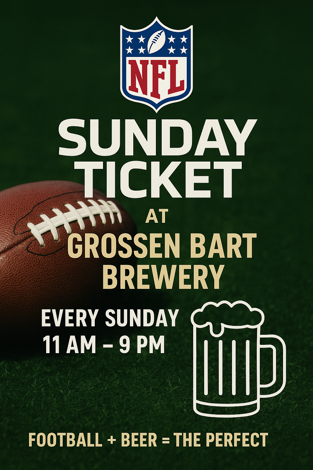 🏈 NFL Sunday Ticket at Grossen Bart Brewery! 🍻 Jan 11 All day 🏈 NFL Sunday Ticket at Grossen Bart Brewery! 🍻
